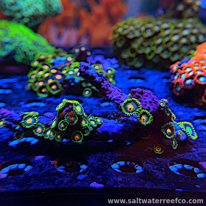 Discover vibrant Zoanthid diversity with our curated frag selections, each frag showcasing an exceptional spectrum of hues and morphologies. Hand-selected for maximum color variation, these corals establish stunning polyp carpets across your aquascape. Each specimen is affixed to a ceramic plug or rubble rock substrate, ready for secure mounting via super glue gel or epoxy to your existing live rock structure. Expect rapid colonization and reliable growth from these premium, farm-propagated fragments.